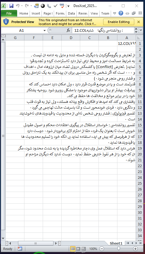 در مورد فایل Excel: