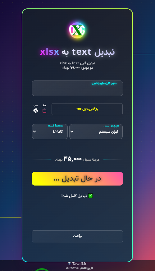 تبدیل متن فارسی داس به ویندوز اکسلTXLSx