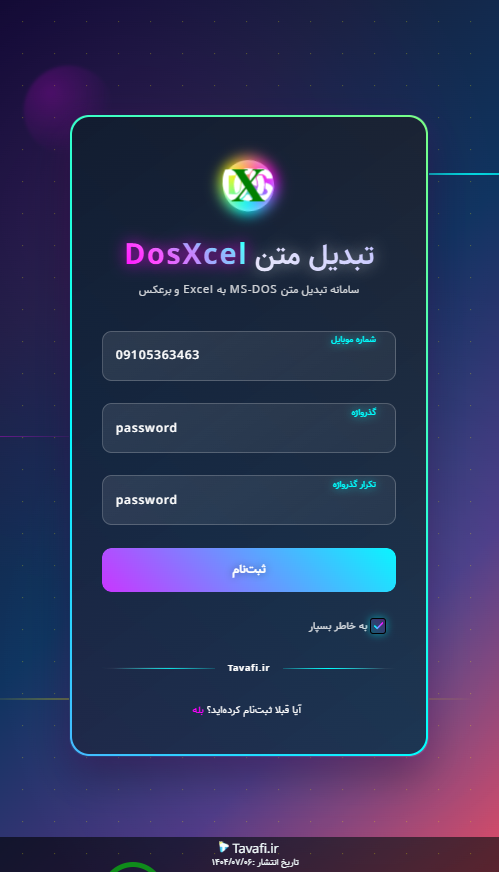 ورود به سامانه از طریق لینک https://tavafi.ir/dosxcel، امکانپذیر است.