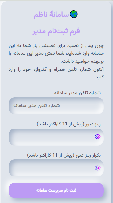 شدهاید، شما نقش مدیر این سامانه را بر عهده خواهید داشت