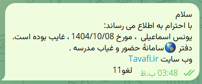 پیامک فقط برای دانشآموزان غایب و فقط به شماره ثبتشده ولی ارسال میشود. قبل از ارسال، لیست شمارهها قابل بررسی و تأیید است. -