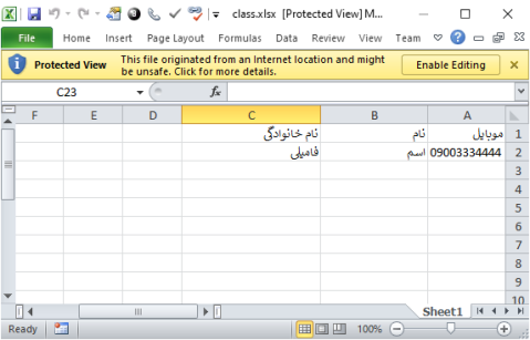 بارگذاری اسامی و شماره موبایل والدین دانشآموزان توسط یک فایل Excel