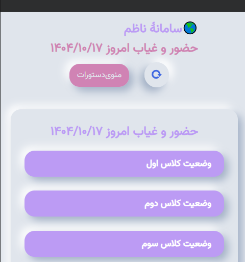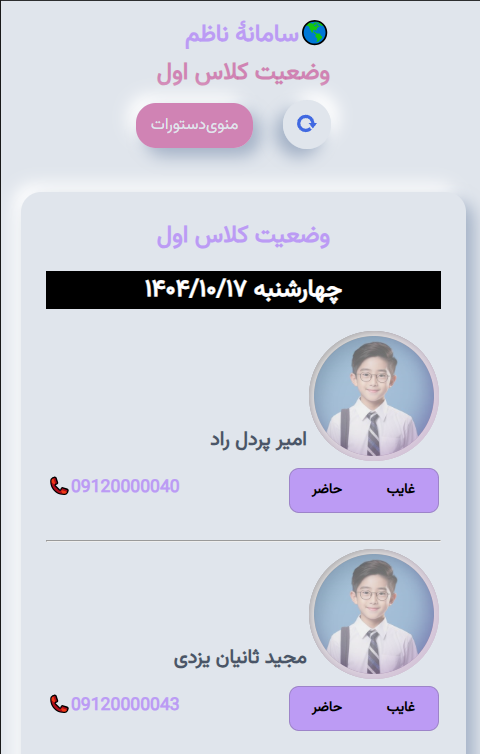 ناظم یک سامانه ساده، سریع و کمهزینه برای مدیریت حضور و غیاب دانشآموزان و اطلاعرسانی به والدین است. این سامانه با هدف کاهش کارهای وقتگیر معلمان و مدیران مدارس طراحی شده و بدون نیاز به دانش فنی خاص، تنها با یک مرورگر روی موبایل یا رایانه قابل استفاده است.