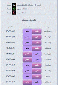 گزارش شفاف از غیبتها و جلسات برگزارشده